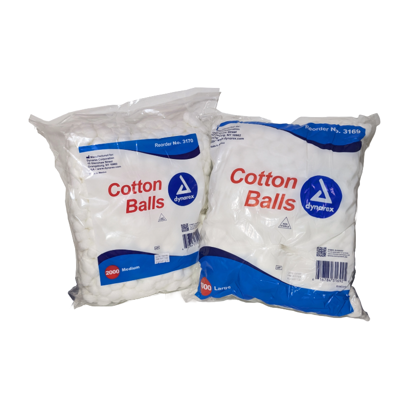 Boules de ouate moyennes (sac de 2 000) ou grosses (sac de 1 000).Grade médical...
