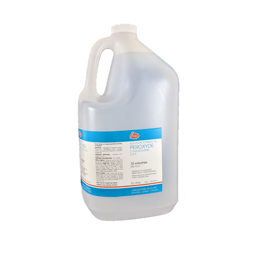 Peroxyde d'hydrogène 3% - 10 vol. Contenant de 4,5 litres. NPN : 00579297Photo à titre indicatif....