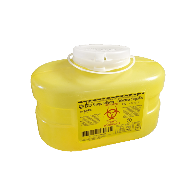Contenant Sharps jaune pour déchets biomédicaux pour aiguilles souillées. Dimensions : 5'' de large x...