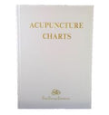Chartes d'acupuncture pliées en 3 dans un livre à couverture rigide.