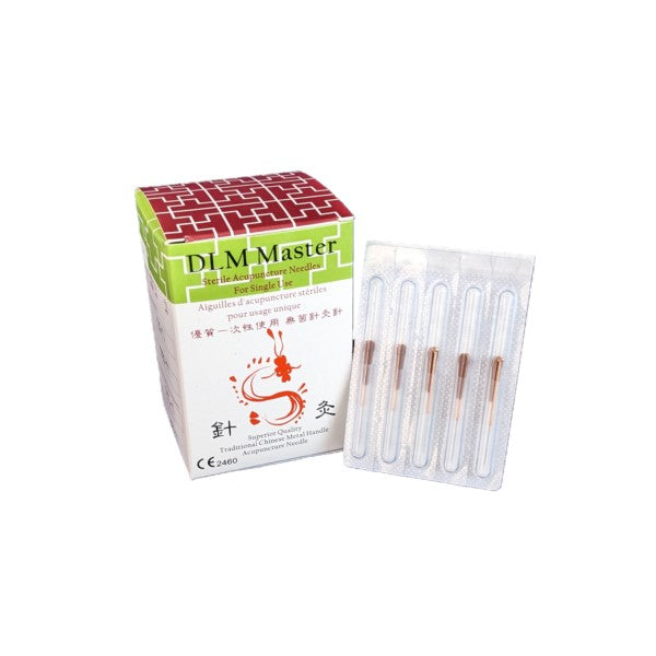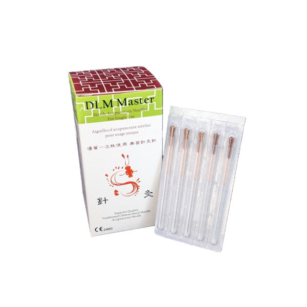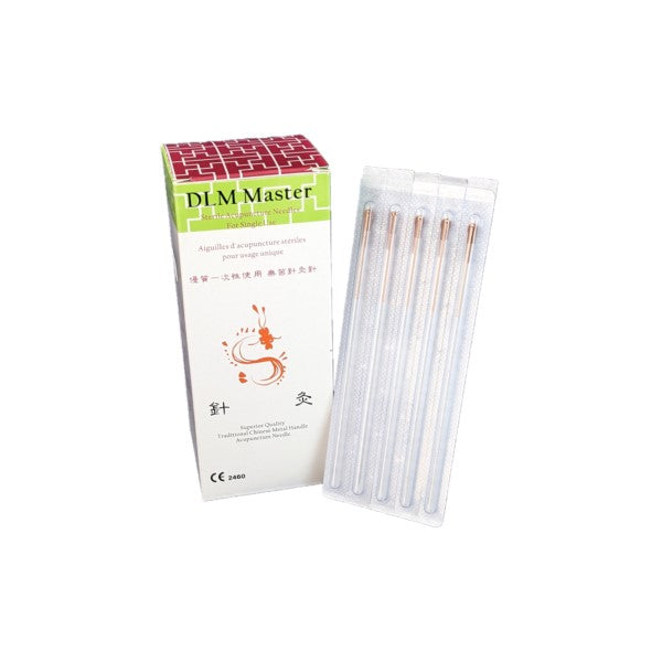 Les aiguilles d'acupuncture DLM Master individuelles sont des aiguilles chinoises de qualité supérieure de type bimétal non siliconé. Elles sont faites d'acier inoxydable de qualité chirurgicale et leur manchon est en cuivre.