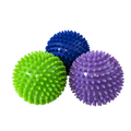 Balles de massage/réflexologie en plastique semi-flexible. 3" (7 cm) ou 4" (9 cm) de diamètre. Vendues à l'unité. Couleurs assorties.