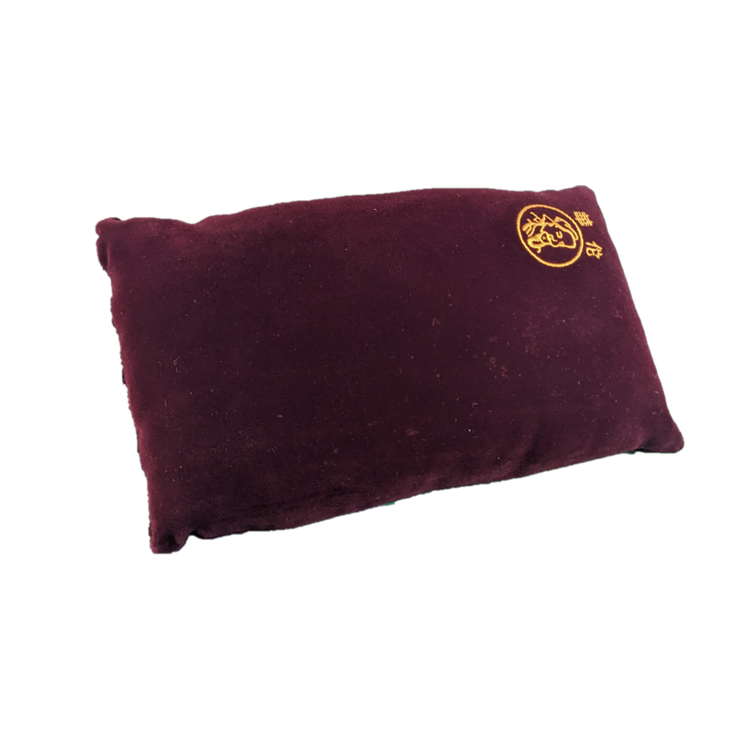 Un coussin authentique, traditionnel et doux, en velours rouge, utilisé en Chine pour soutenir confortablement le poignet lors du diagnostic du pouls. Disponible en deux tailles.