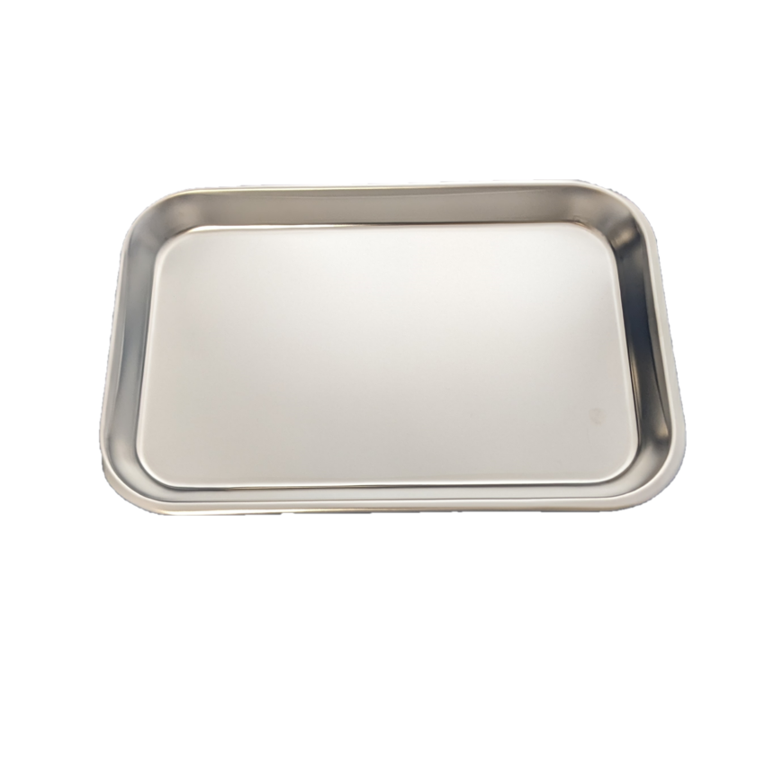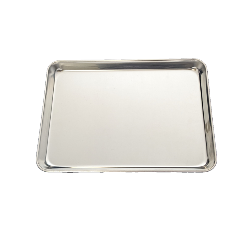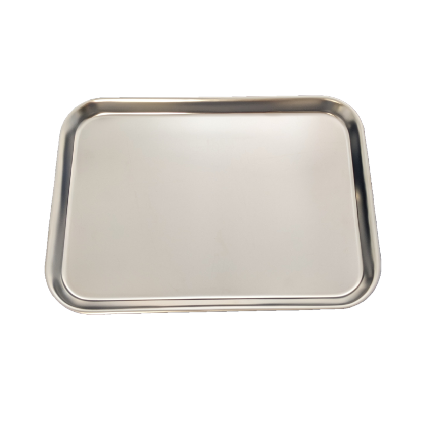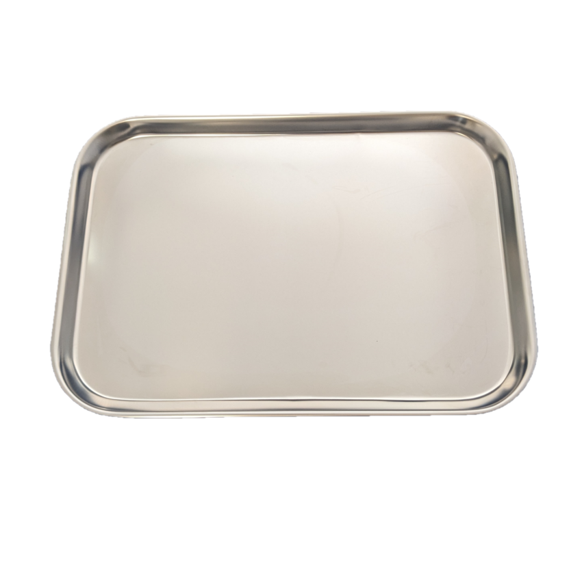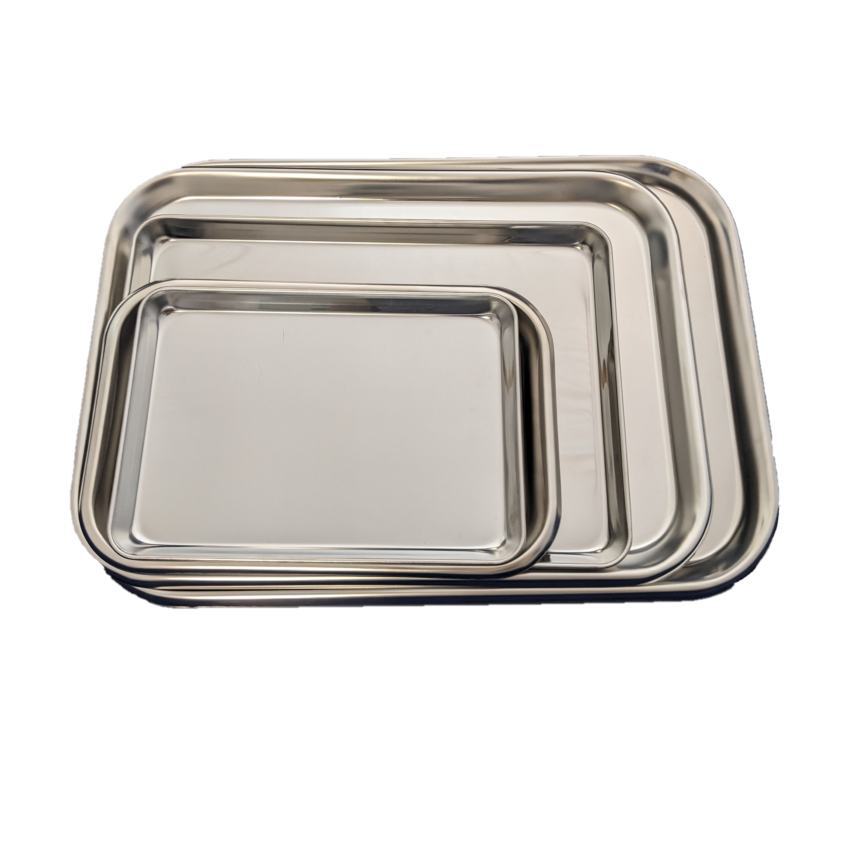 Plateaux en acier inoxydable offerts en différentes dimensions.