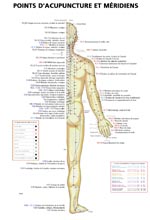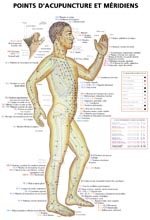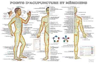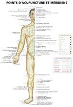 Points d'acupuncture et méridiens avec indications pathologiques (ens. 3 planches)